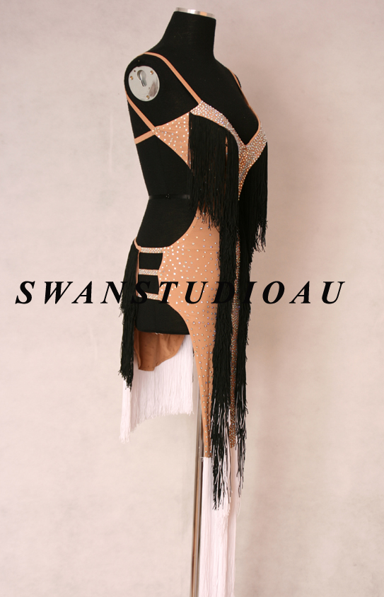 • ダンスドレスは、ボディー部分はストレッチ生地を使用し、身体にフィットさせて着用するという前提で製作されます。フィットさせると身体の線が出るのでストレッチさせない状態で着たいというお客様は、「ご希望欄」にストレッチさせずに着用と記載をお願い致します。